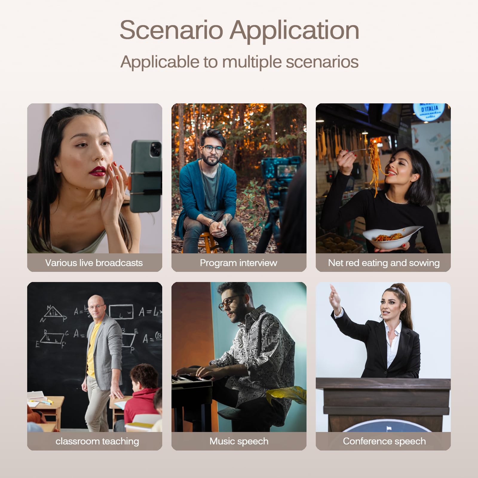 - Noise reduction, Crystal Voice Syncs: Our System is immune to interference from communication devices such as mobile phones, WLAN or Bluetooth, or light systems. Using real-time auto-sync technology, provides directional pickup with pronounced proximity effect at close range that enhances the user’s voice, extremely reduce the video post-editing. Support Multi-Channel Real-Time Mixing, it can synchronize the background music for phone and human voice in real time.