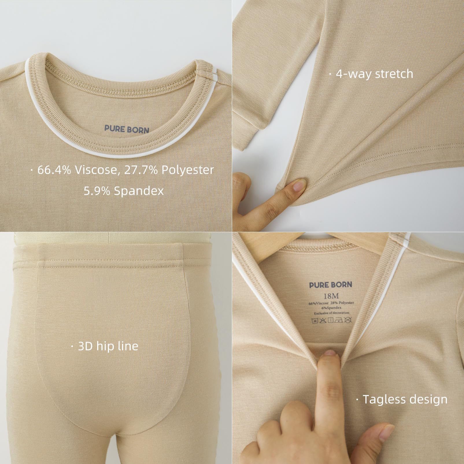 pureborn Toddler Pajamas Set Pjs - Little Boy Long Sleeve Snug Fit Sleepwear 2pcs Khaki 2T
