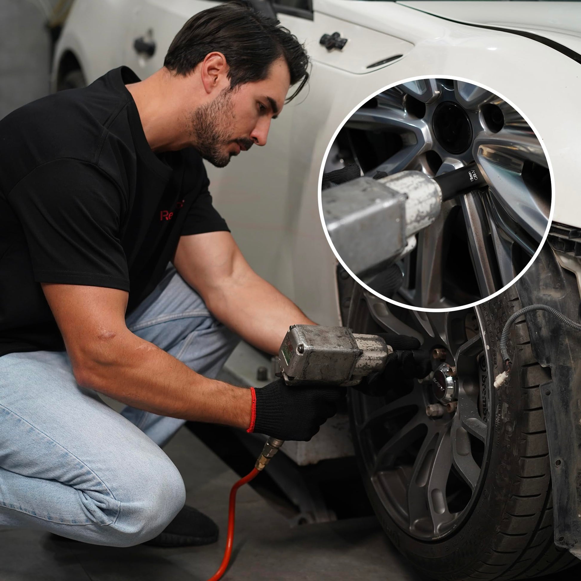 - 6-Point Design & Retention Hole: The 6-point design ensures a perfect fit between the socket and bolt, minimizing wear and prolonging the bolt's lifespan. The pneumatic hole keeps the socket securely connected, preventing it from falling off during use.