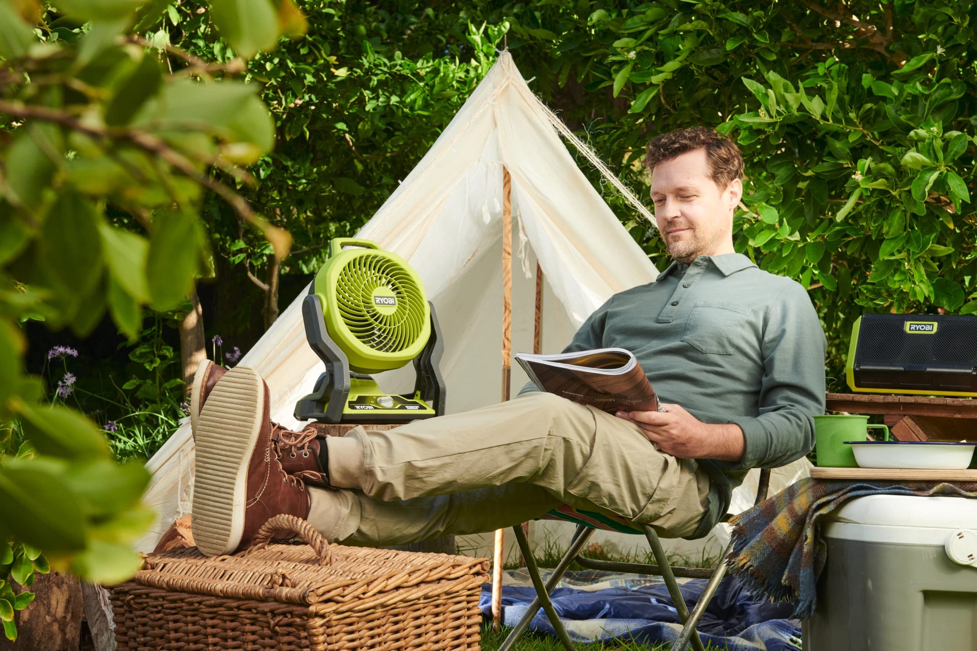 Details: As part of the Ryobi ONE+ system of over 150 cordless tools for the home, garden, automotive, crafting and much more, the latest Ryobi 18V ONE+ RF18-0 Cordless Fan offers a portable source of cooling air. With three speeds, customised airflow and runtime options that allow for optimised overnight cooling, this fan is great for camping, traveling, or simply staying cool in the summer heat when in the office, home or workshop. The ONE+ Cordless Fan is designed to allow even more effective cooling and ventilation, making sure its superior cooling effect can be felt over longer distances. Not only does the 18V ONE+ Cordless Fan have 30% more air velocity than previous models, but thanks to WHISPER technology, its two times quieter at less than 50db, ensuring minimal distractions while in operation. With an integrated carry handle for easy portability and pivoting head directs that give precise airflow positions, this cordless fan is the perfect companion for any domestic trip or DIY activity. Multiple hanging and mounting options also make it super easy to fix or hang the fan in any desired position around the home, office or campsite. Using a 5.0Ah battery (not included), on its low mode setting, the Ryobi RF18-0 provides up to 35 hours of cooling on a single charge. This is a bare tool - battery and charger are not included.