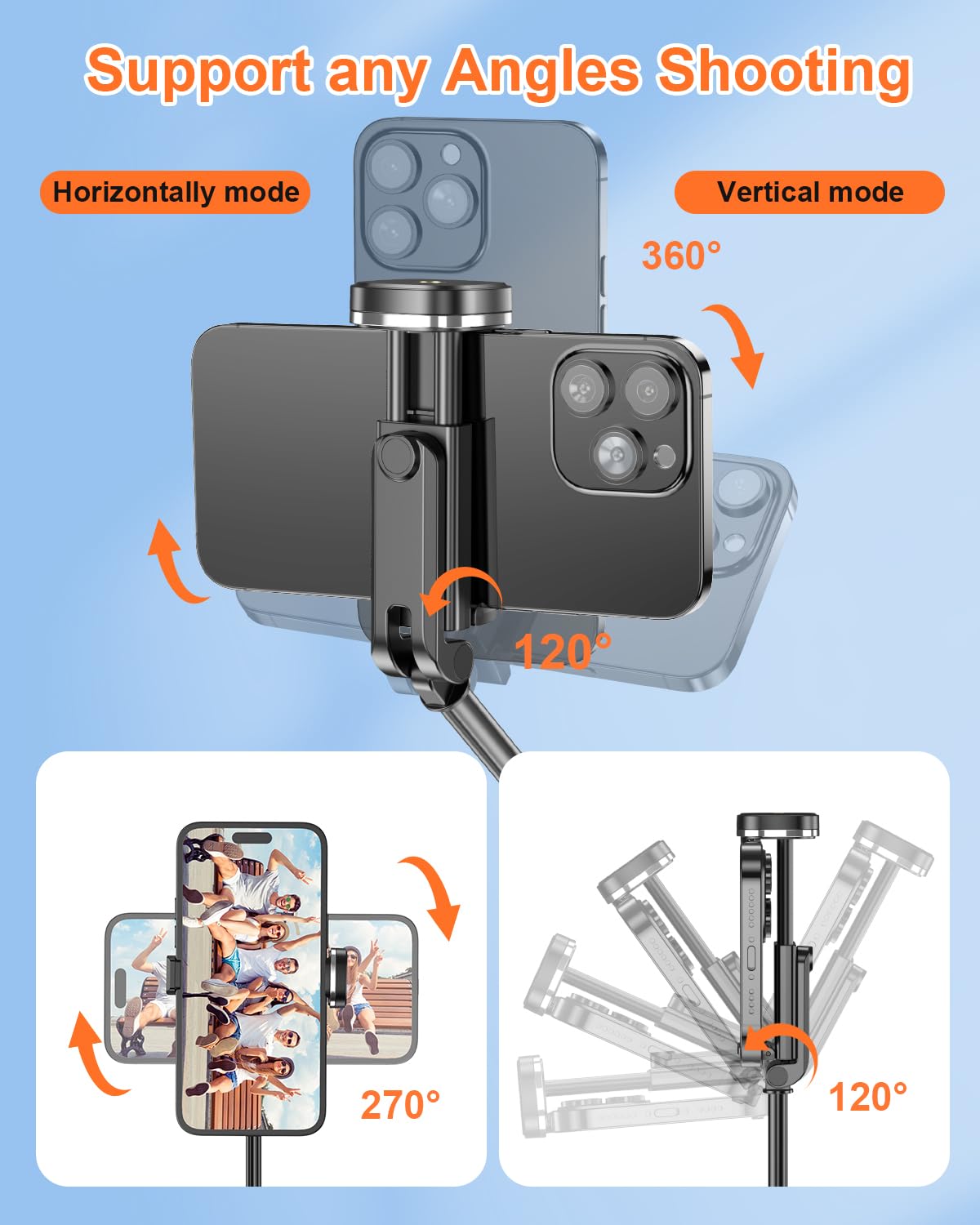 - [Wireless Remote Shutter] - This phone tripod comes with a wireless remote,Operation distance maxmum 33ft,so you can take photos and videos with it in distance,and you don't need to ask others for help,the remote shutter can be set in the grooves when not in use in case lost,very conveniently. and it compatible with Iphone 16 series/15 series/14 series/Samsung series