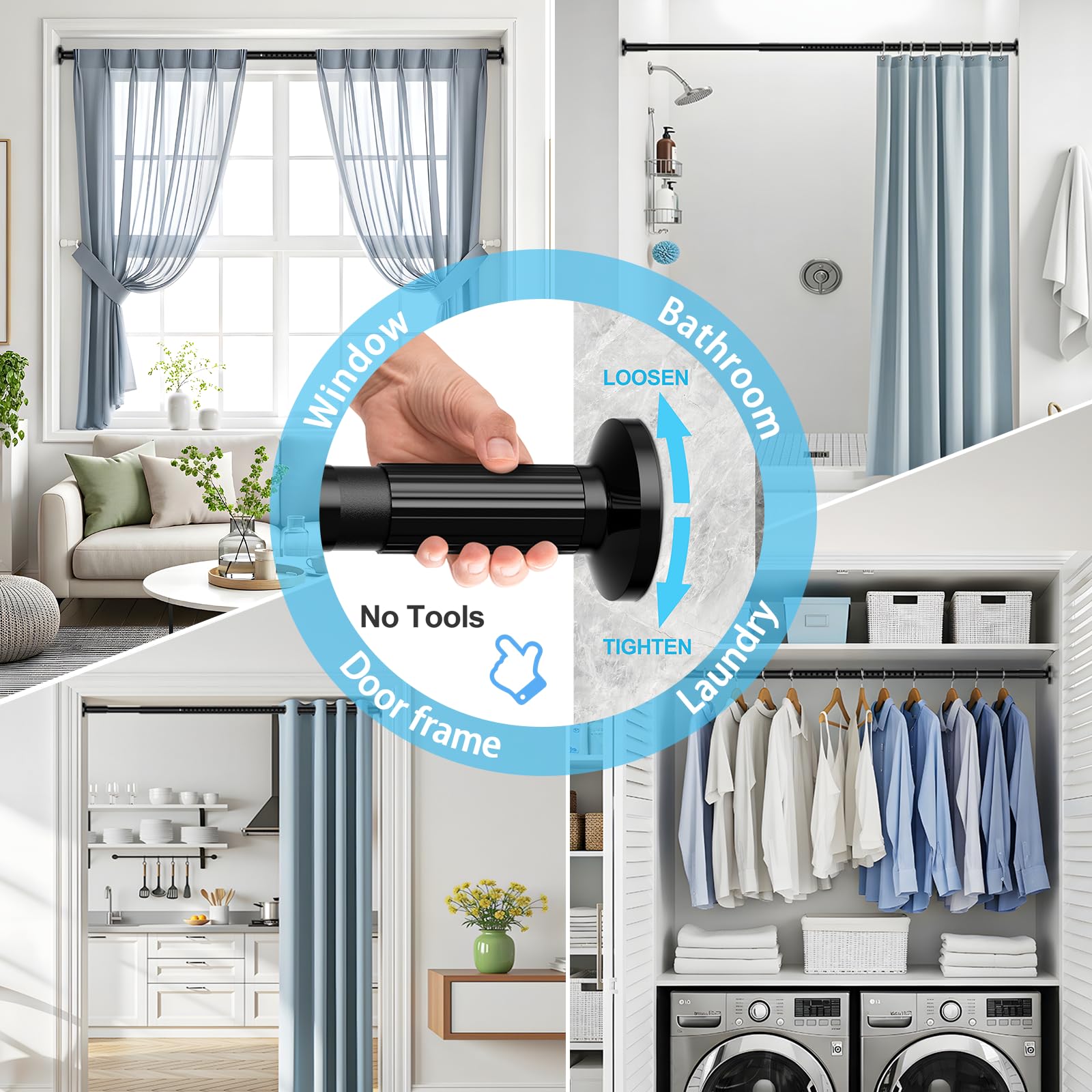 shower Curtain Rod 37-50 Inch,curtain rod No Drilling for Window or Bathroom, Outdoor Curtain Rods for Patio black Tension curtain Rod, Easy to Install, Never Rust, Rod Diameter 1.26 Inches