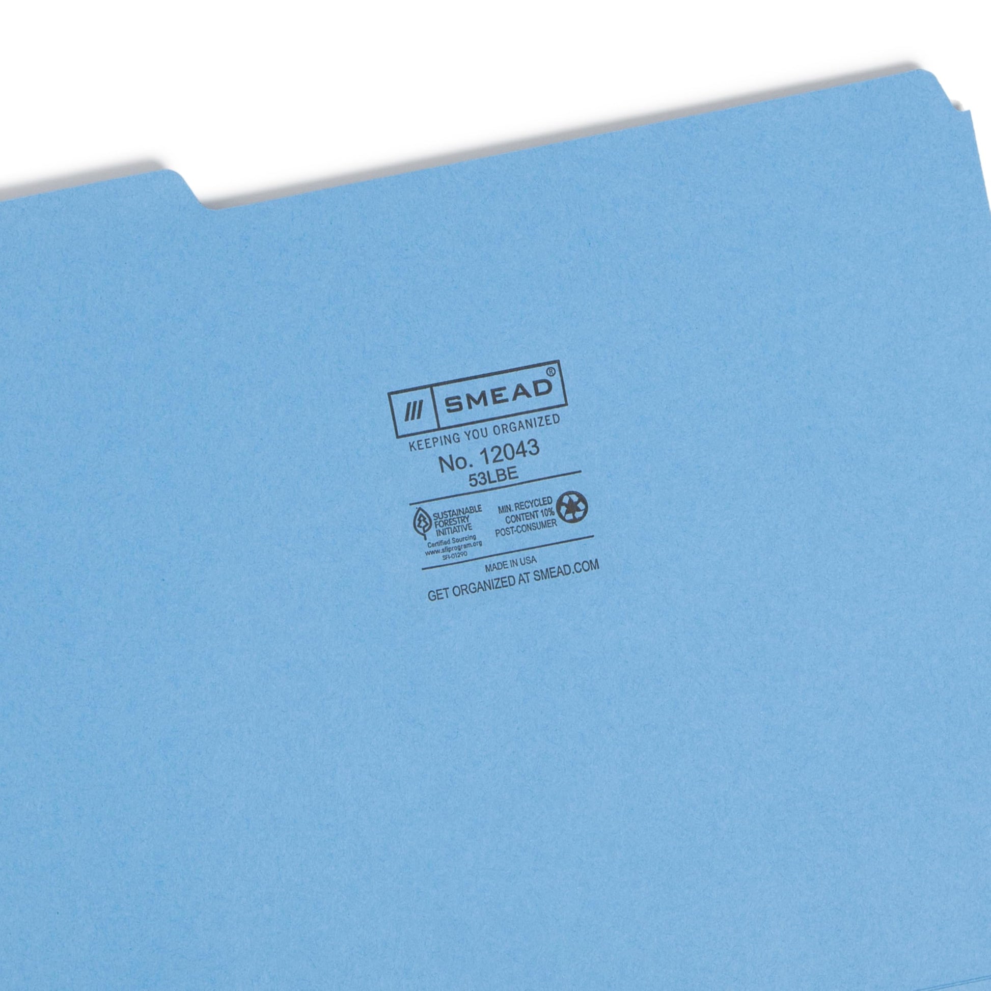 Smead Blue File Folders for Documents, with 1/3-Cut Tabs, Letter Size, Blue, 100 Pack for Easy Organization and Office Use (12043)