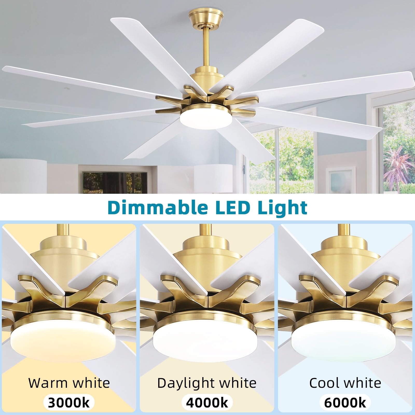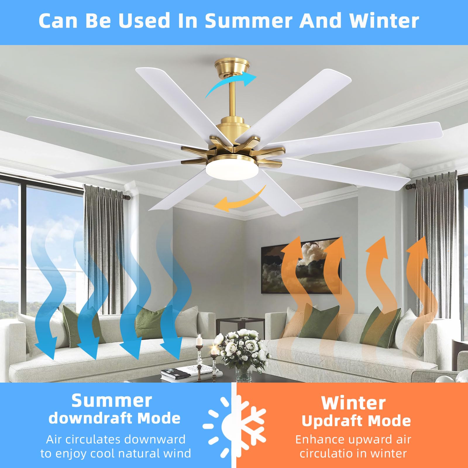 - 66 inch Smart Ceiling Fan with Light: Bring more than just wind and light, but comfort! Sofucor smart wifi ceiling fan, with 8 Blade Modern design, it can be the perfect decoration in your home while delivering enough airflow. Maximum applicable room size can be up to 25ft*25ft, The maximum airflow is 7000 cfm.