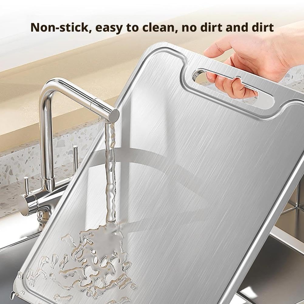 - 【Durability & Longevity】:Stainless steel cutting boards are highly resistant to scratches, dents, and stains. Built for heavy-duty use, they won’t warp or deteriorate over time, ensuring lasting performance.
