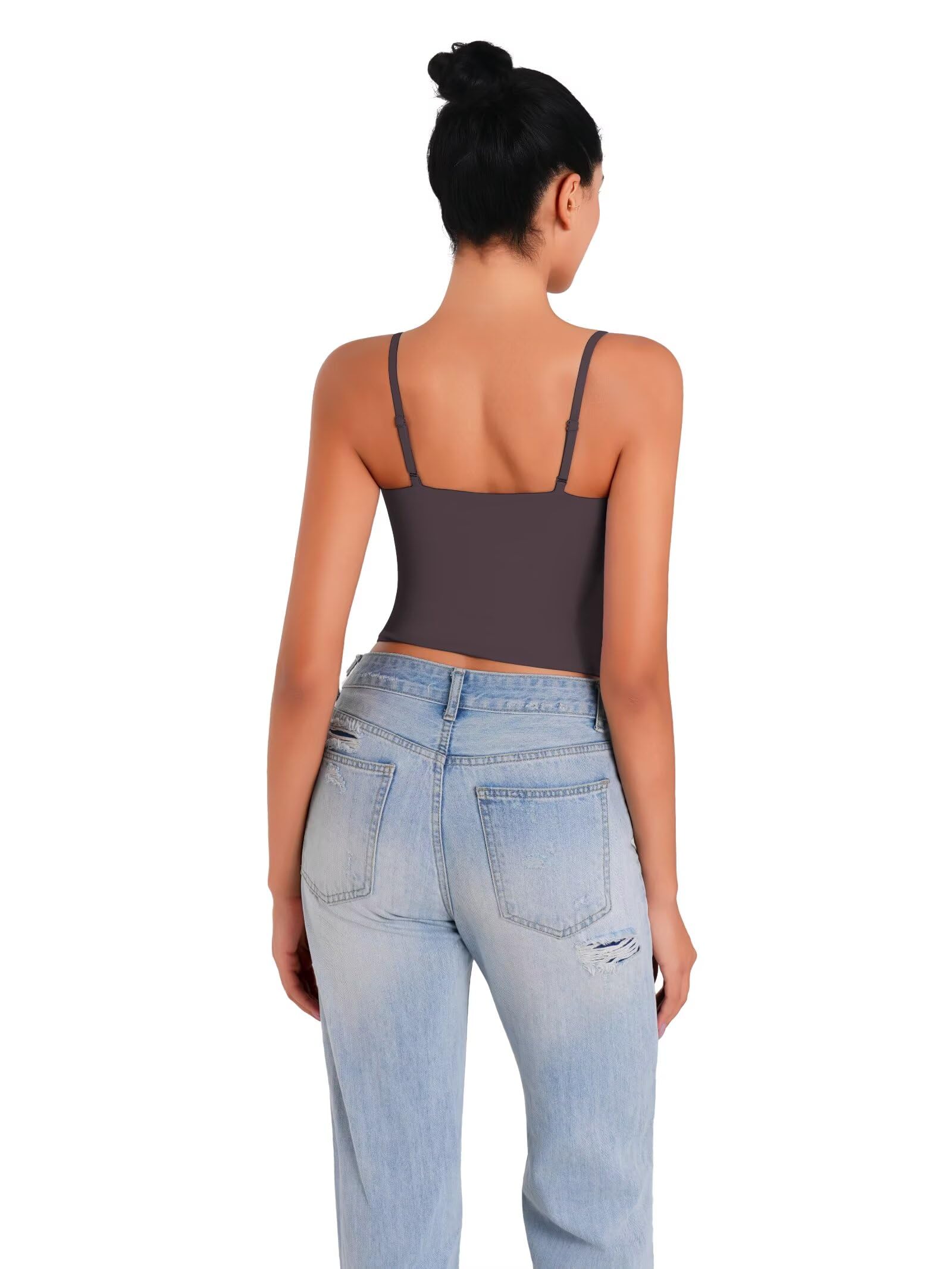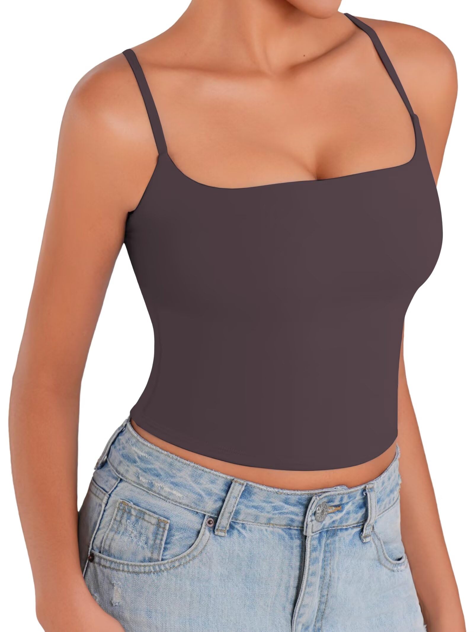 Sunzel Spaghetti Strap Tank Top for Women Double Lined Camisole Square Neck Cami Top Summer Undershirts Going Out Basics Seal Brown Small