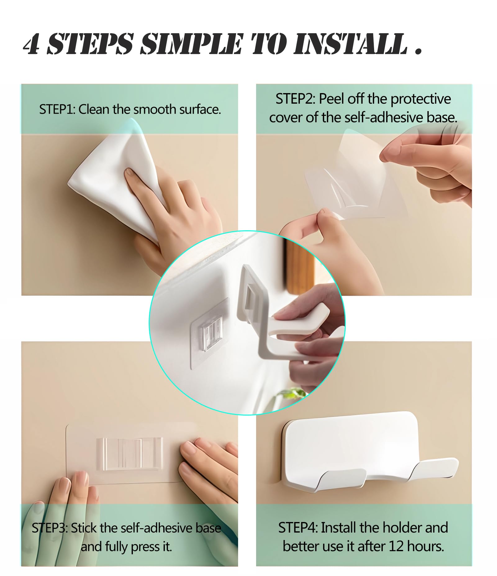 - Easy Installation: No more complicated installations. Our Hair Dryer Rack comes with a hassle-free installation design. Stick the self-adhesive base to tiled/marble wall, glass, mirror, back of the door or inside of cabinet, then install the hair dryer holder onto it, saving you time.