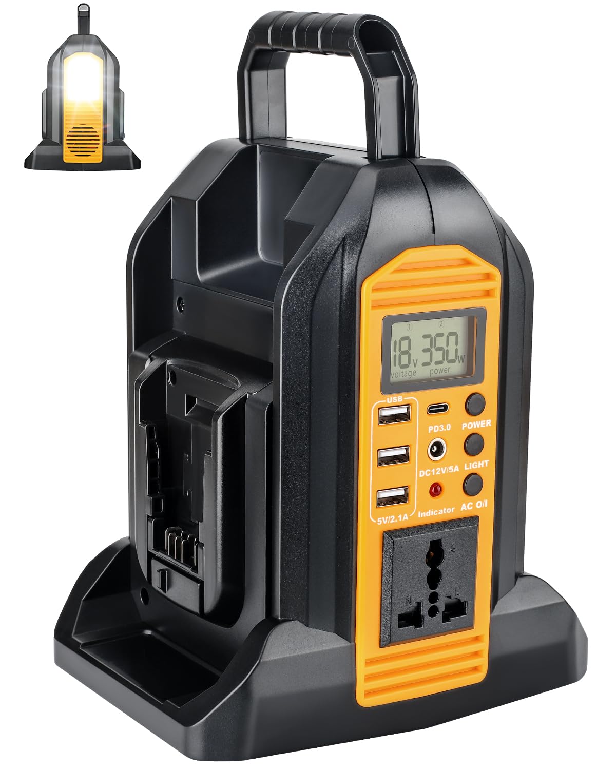 - ⚡350W 2-Ports Power Inverter: Perfect Compatible with Dewalt 20V 60V Battery DCB204 DCB203 DCB205 DCB208 DCB201 DCB206 DCB240 DCB207 DCB210 DCB230 DCB205BT DCB606 DCB609 DCB612 DCB615 etc.(Battery not included)
