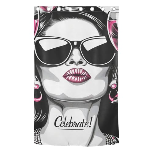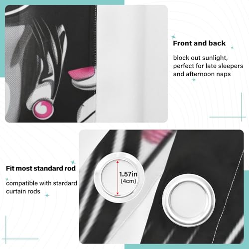 tplaotee Black and White Illustration Celebrate Black Out Curtain Curtains for Bedroom Living Room 84 inches Length Blackout Blinds Room Darkening Curtains Size 52x84 in