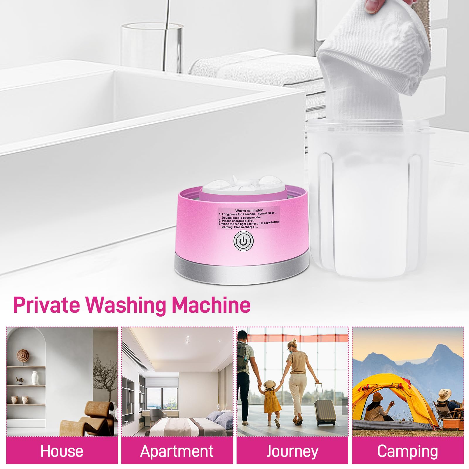 Underwear Washing Machine, Portable Mini Washing Machine | Compact Deep Cleans Underwear, Baby Clothes, Small Laundry | Lightweight for Apartment, Dorm, Hotel, Travel & Camping(Pink)