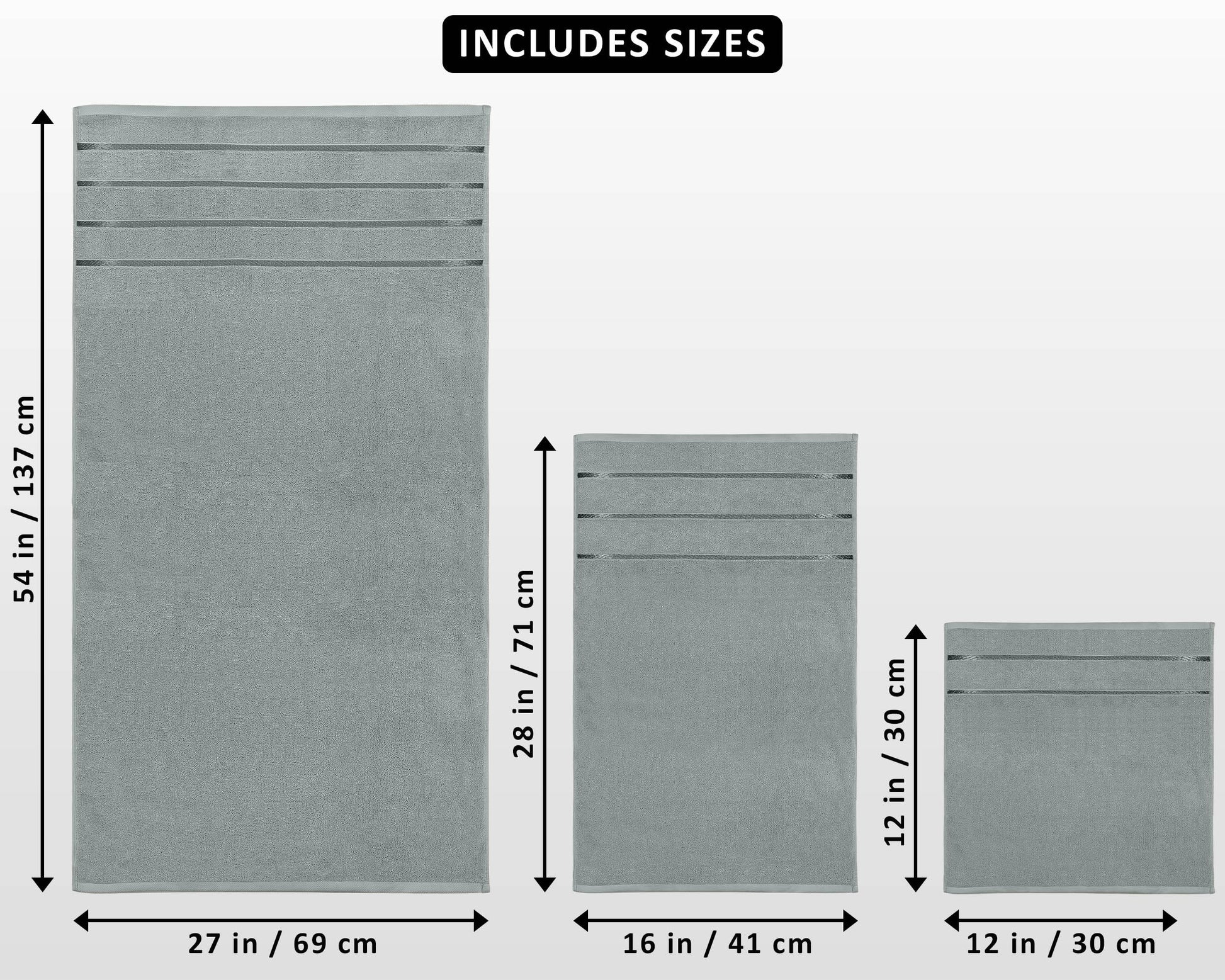 Utopia Towels 8 Piece Luxury Towel Set, 2 Bath, 2 Hand, and 4 Wash Cloths, 600 GSM Ring Spun Cotton, Highly Absorbent Viscose Stripe Towels, Ideal for Everyday use, Cool Grey