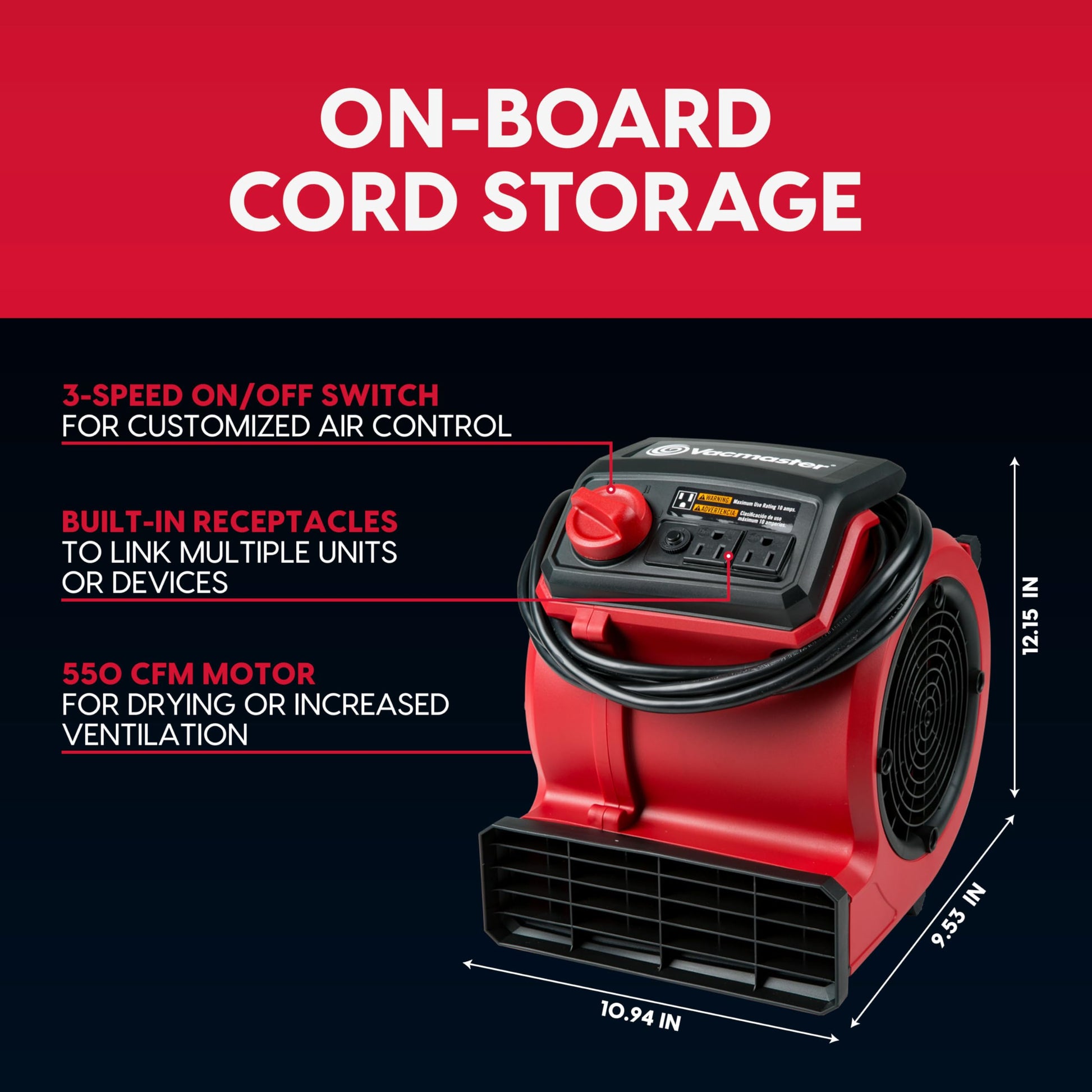 - CUSTOMIZABLE AIR FLOW: 3-speed power switch and 3-position design create more targeted air flow for rapid drying and cooling