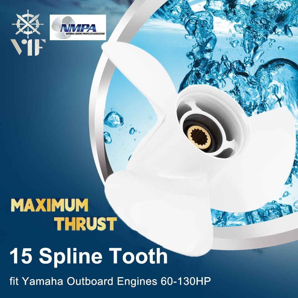 VIF Jason Marine 13 1/4x17-K Aluminum Boat Propeller for Yamaha Outboard Motos 60/70/75/80/85/90/115/130HP,OEM Parts No.6E5-45945-01-EL,15 Tooth, Rh
