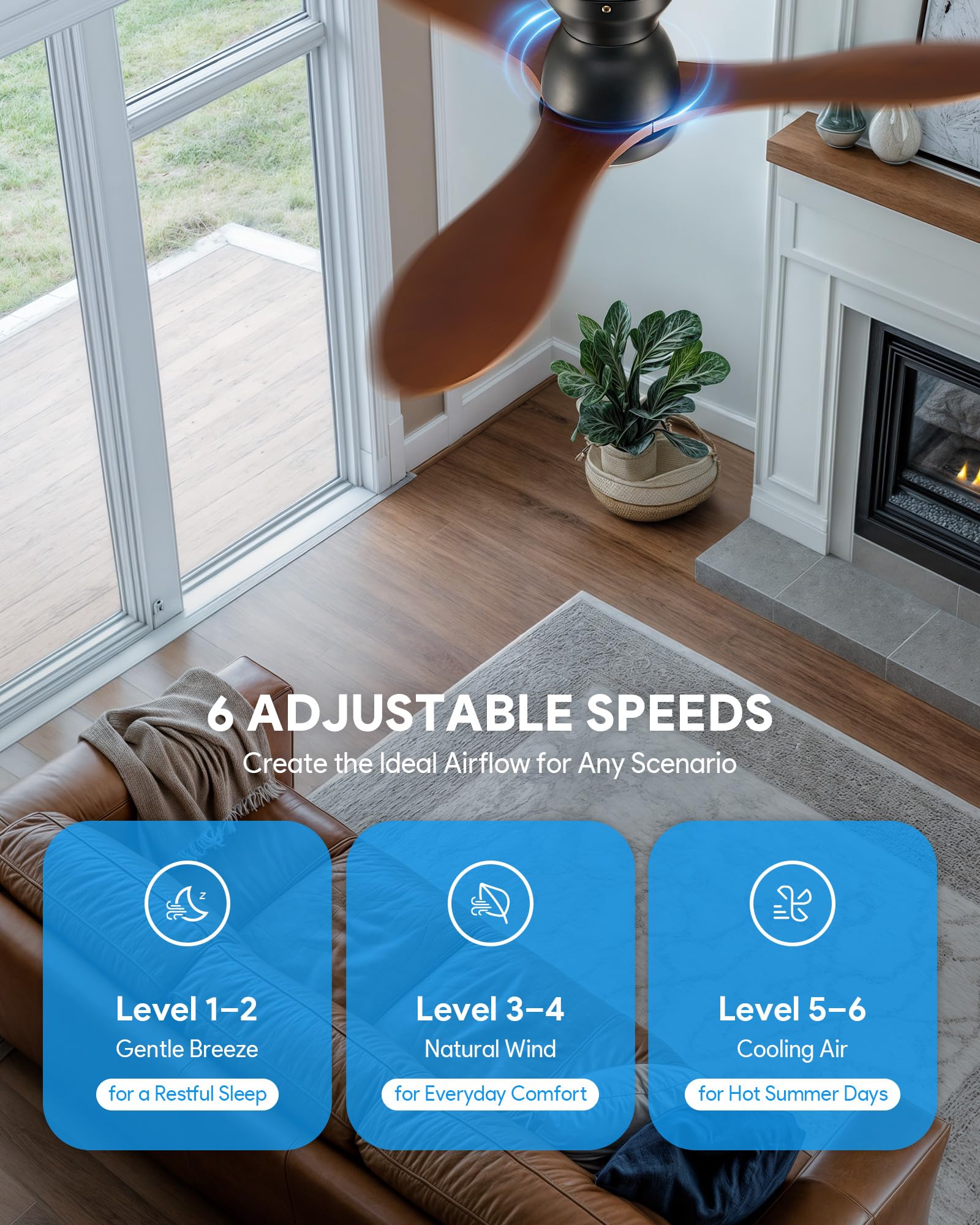 - 6 Speeds Reversible DC Motor- The wind speed can be adjusted in 6 levels, you can choose between comfortable wind, natural wind and strong wind. Reversible dual direction fan improves air circulation to keep you warm in winter and cool in summer