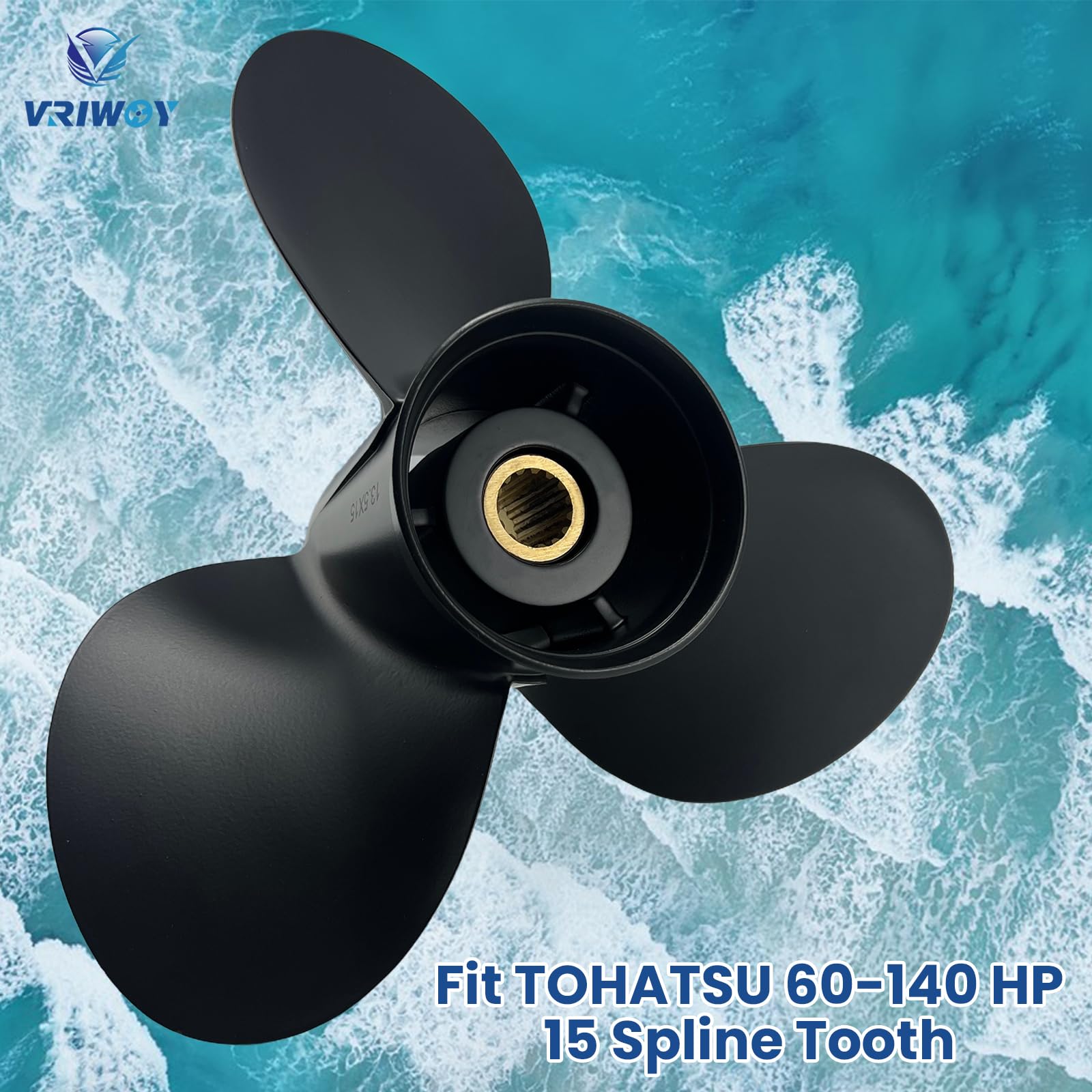VRIWOY 13.5x15 13.25x17 Aluminum Boat Propeller for TOHATSU Outboard Engines | 60-140HP | 15 Spline, RH Rotation | Durable 3-Blade Design (13.25Dia×17Pitch OEM NO.3HKB64536-0)