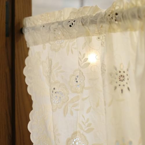 Window Curtains, Blackout Curtains Kitchen Window Beige Cotton Linen Embroidery with Flower Pattern Drapes 1 Panel Rod Pocket 50" W x 51" L