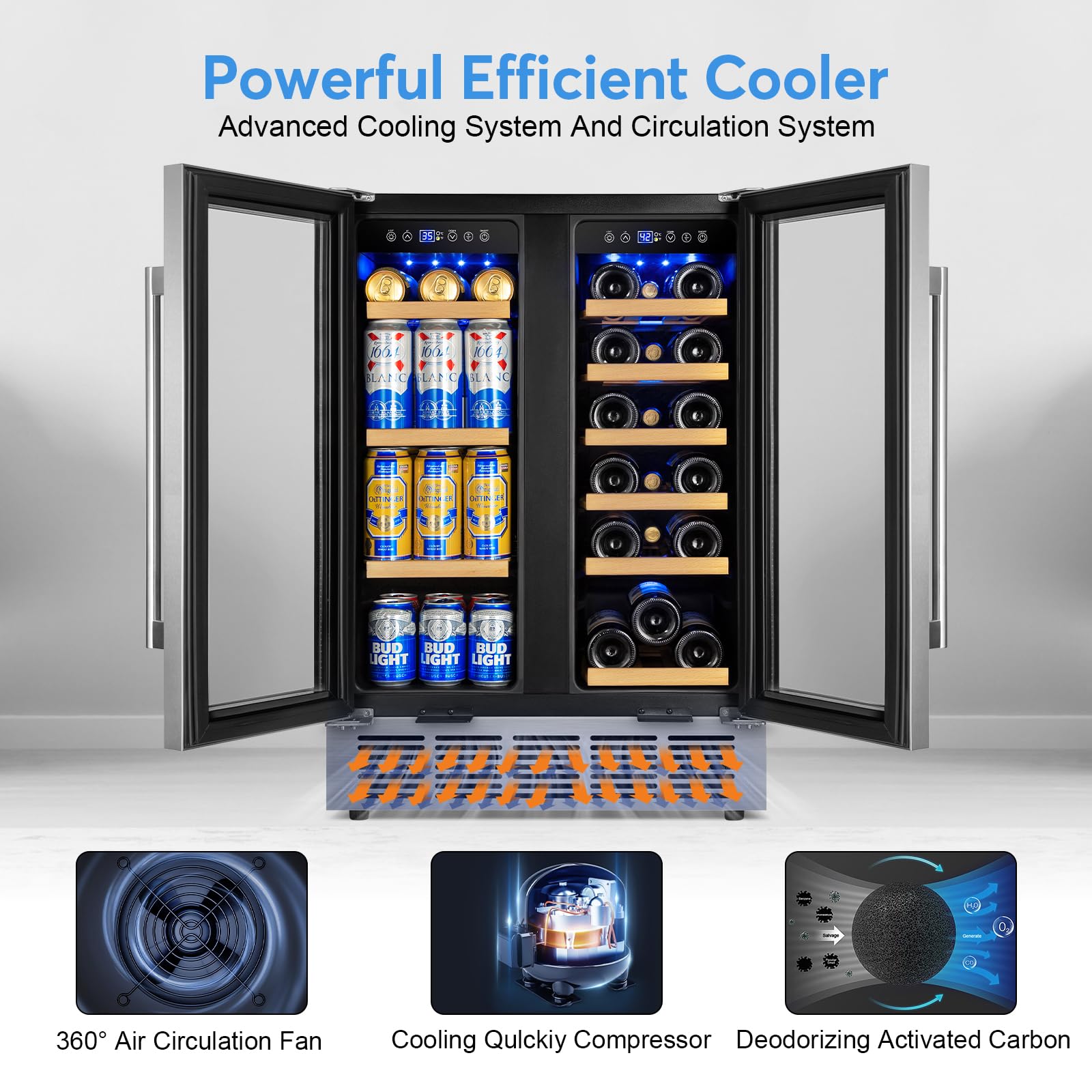 - Energy-Saving Quiet And Powerful Cooling System: Dual zone wine cooler refrigerator is equipped with a compressor with a quiet and powerful cooling system, which ensures fast cooling performance and at the same time keeps your drinks evenly cooled in the space. It will not affect your rest or work