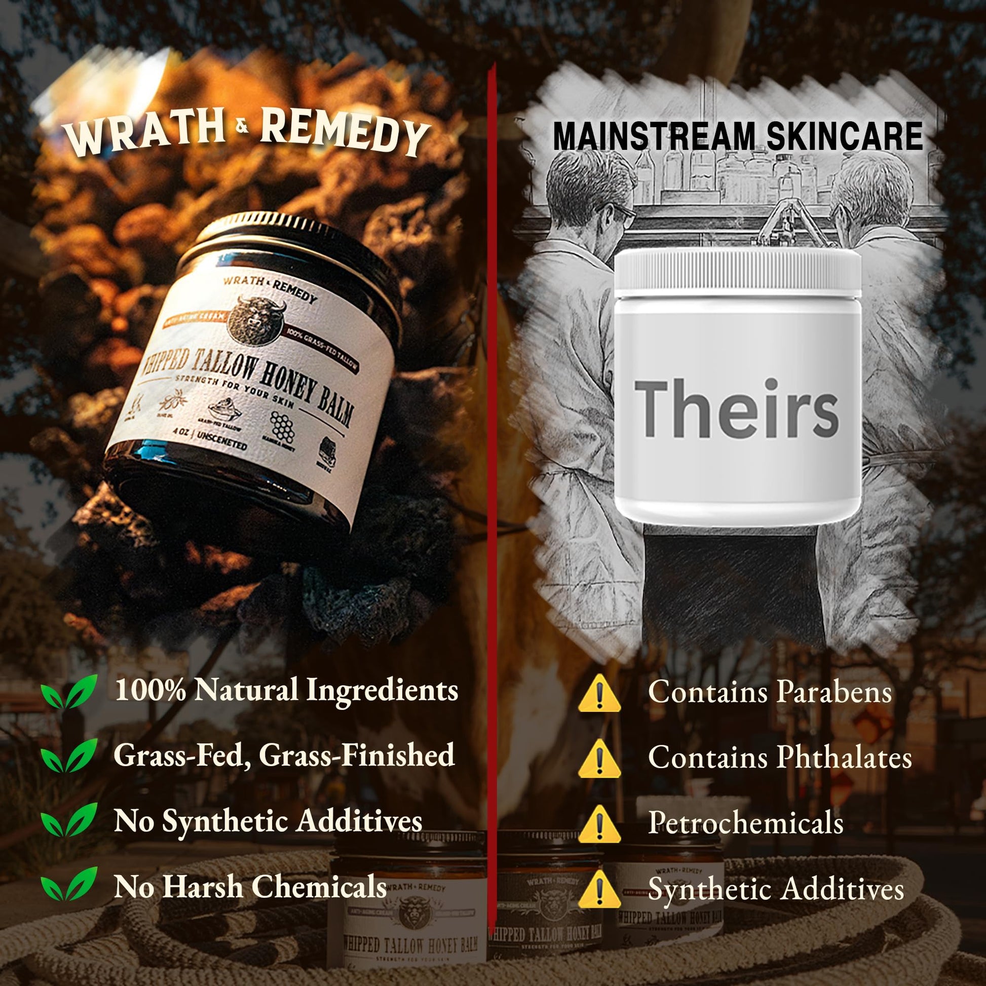 Wrath & Remedy Handmade Whipped Organic Beef Tallow for Skin - 4 OZ (Unscented) — Grass Fed Beef Tallow Moisturizer and Honey Balm for Silky, Sensitive-Skin, Eczema, Rosacea - Free of Harsh Chemicals