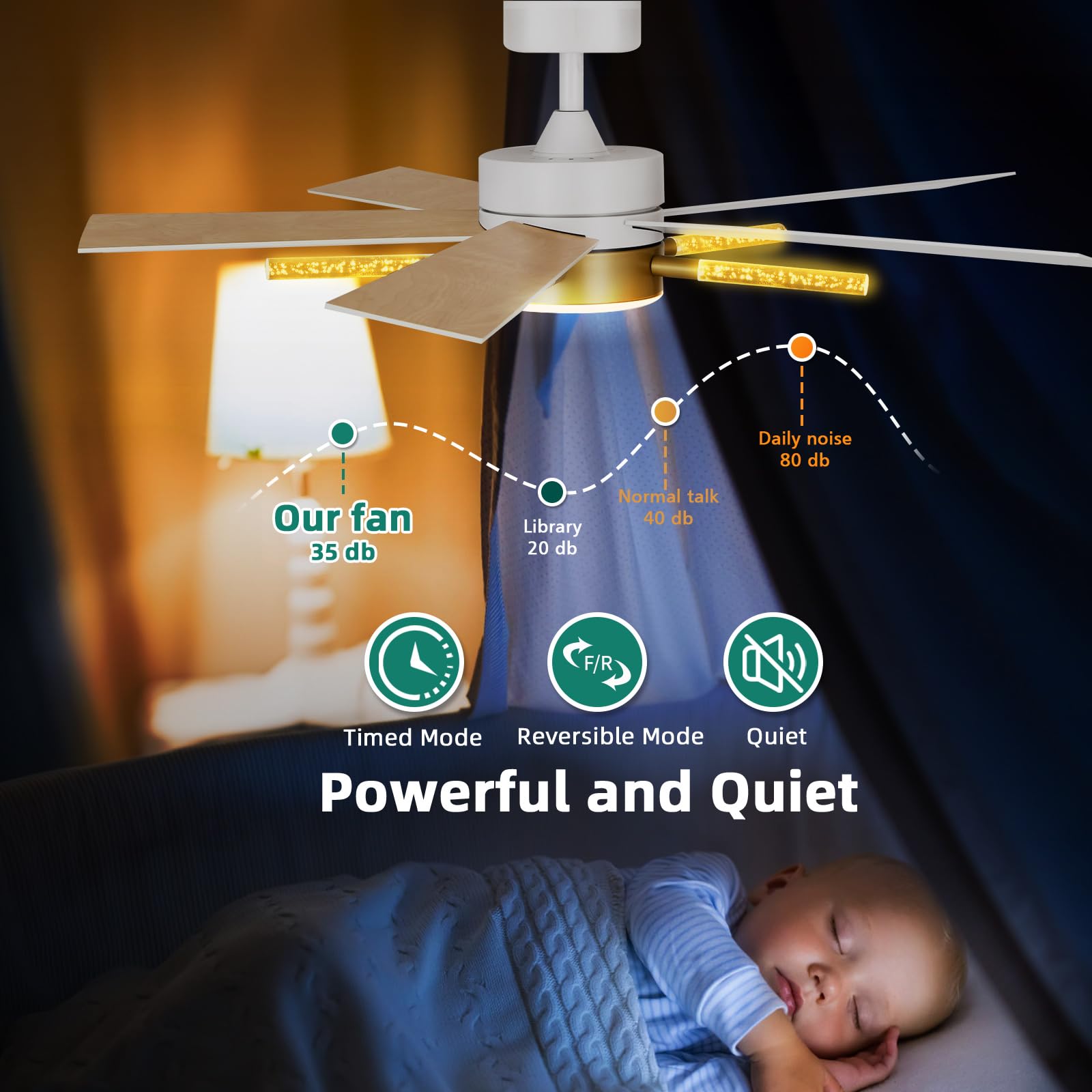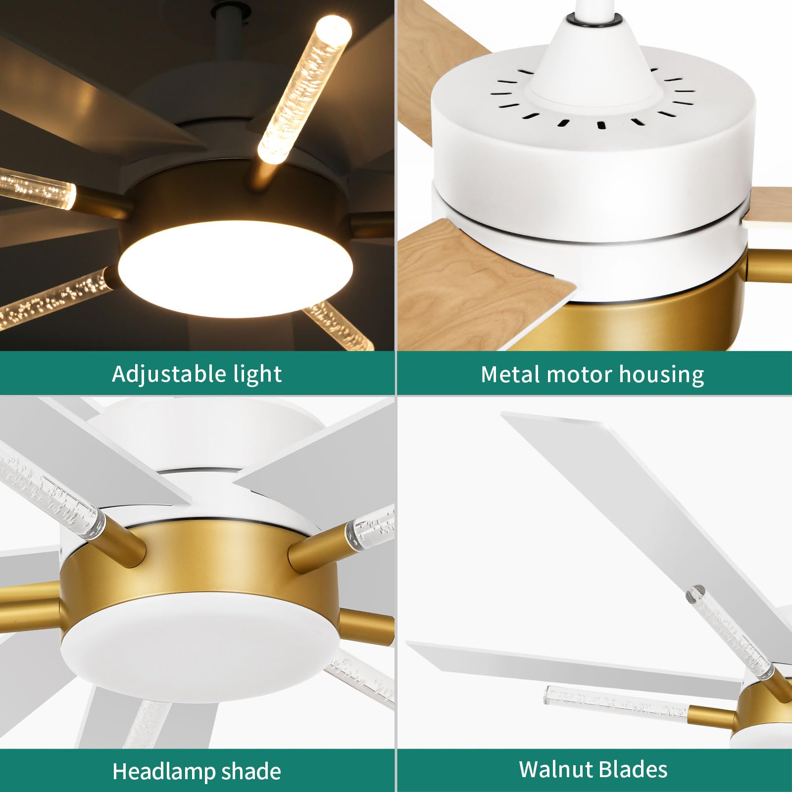 - Self-designed Ceiling Fan: Our self-designed Crystal rods of the ceiling fans enhance the fan's decor appeal, making it a focal point in any room. Their elegant design reflects light, creating unique effects and adding a touch of luxury and modernity